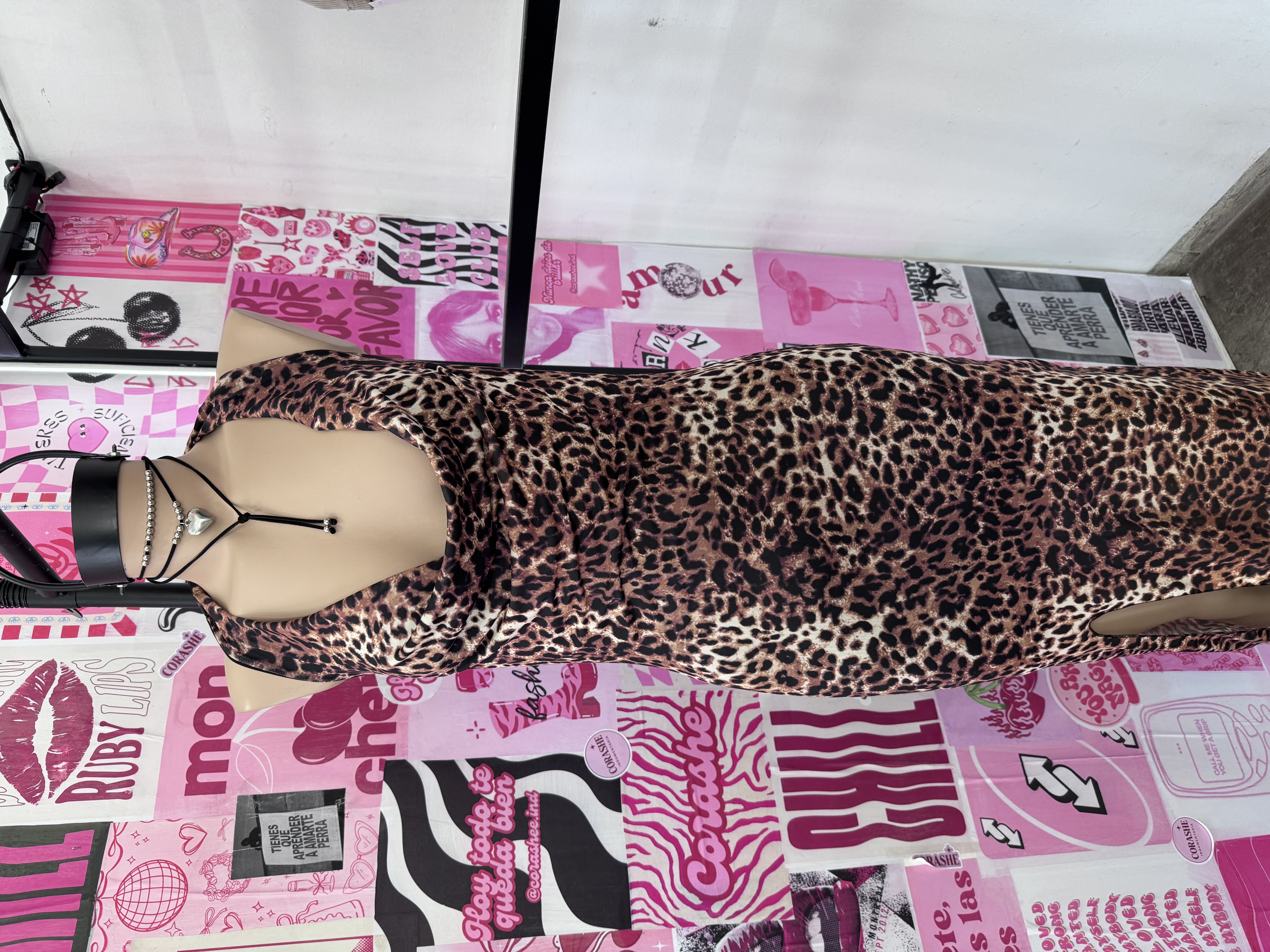 Vestido largo animal print de microtul, súper liviano y elastizado 🐆✨ Con escote profundo y buche delantero que realza el busto, cuello halter y espalda descubierta para un look bien sensual. Se adapta al cuerpo marcando la silueta y tiene tajo lateral que suma movimiento y actitud.